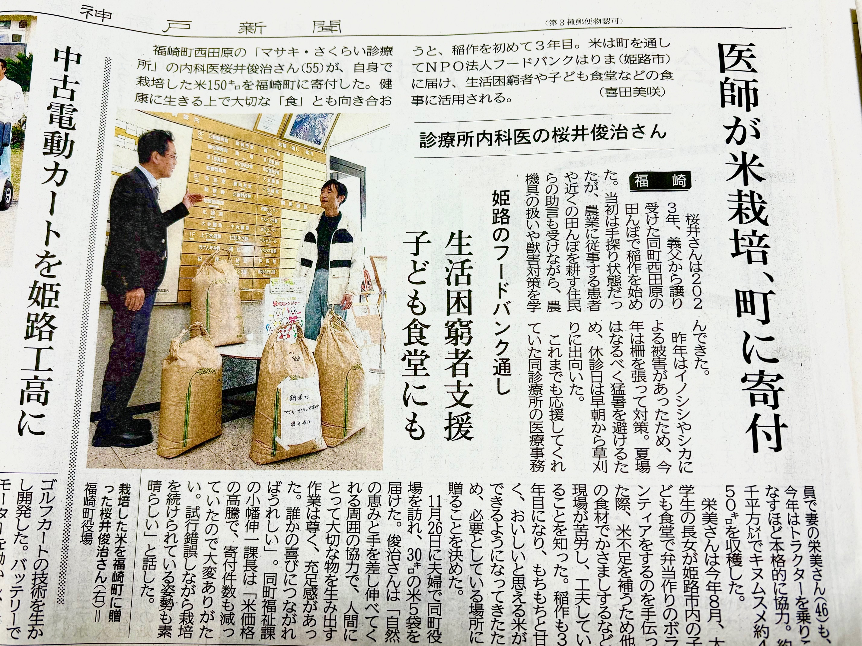 福崎町役場、福祉課へフードバンク、子供食堂に使って頂くお米を持って行きました。